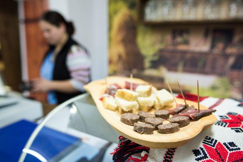La Bunătățuri românești, totul e pe gustate, spun femeile care se ocupă de clienți. De la pecia adusă din Sălaj, până la maioșul de Câmpeni.