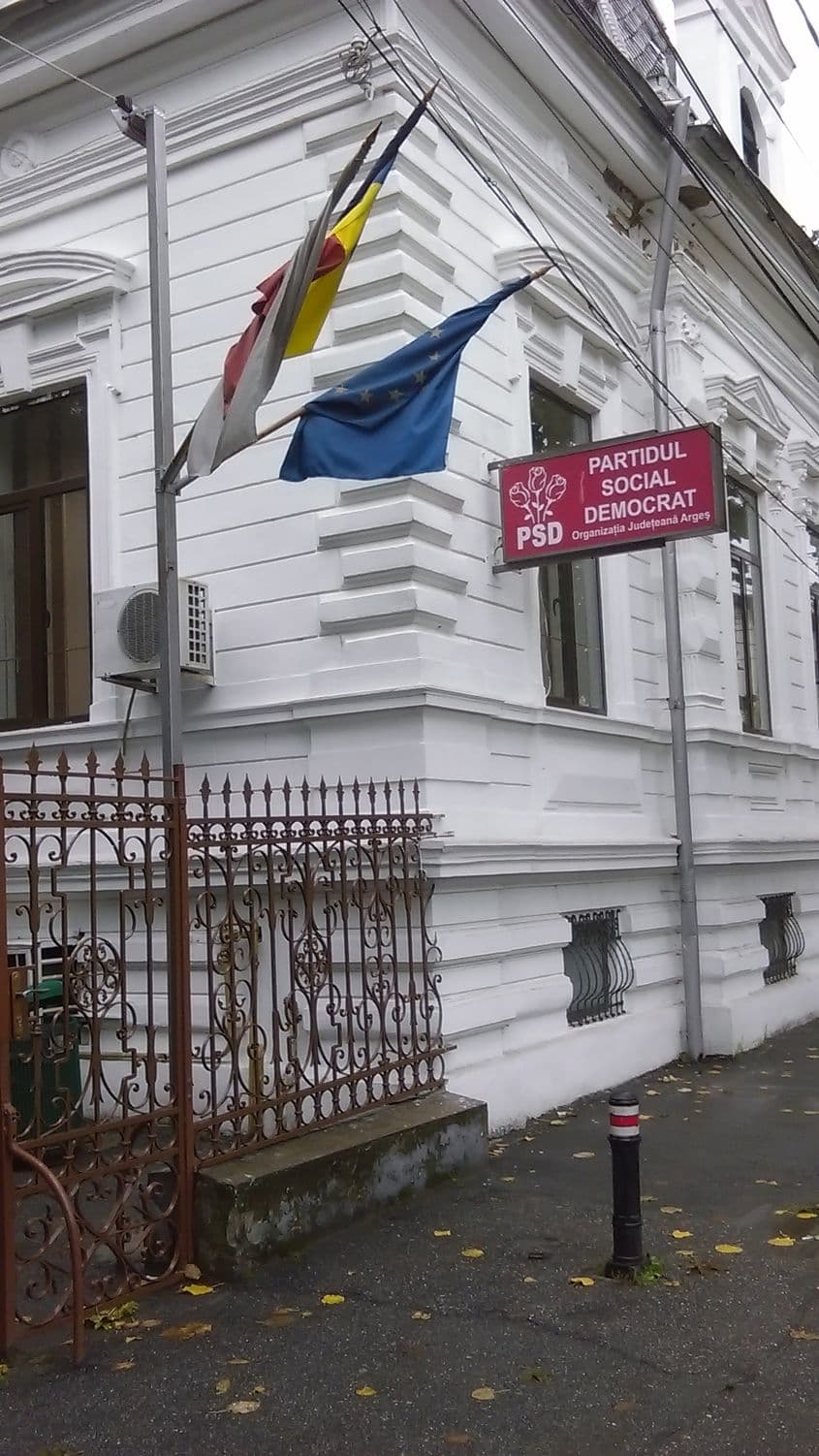 Merg, totuși, pe mâna lui. Găsesc repede sediul, e chiar lângă o pizzerie unde mergeam cu colegii de liceu. Pe tăblia de la intrarea în curte scrie clar, pe fond roșu: „Partidul Social Democrat. Organizația Județeană Argeș”.
