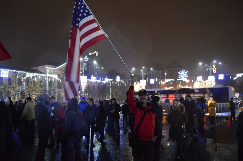 L-am întrebat ce l-a făcut să vină la protest. „Problemele evidente”, a răspuns el, adăugând: „Parlamentul excepțional de corupt și Dragnea, în special”.