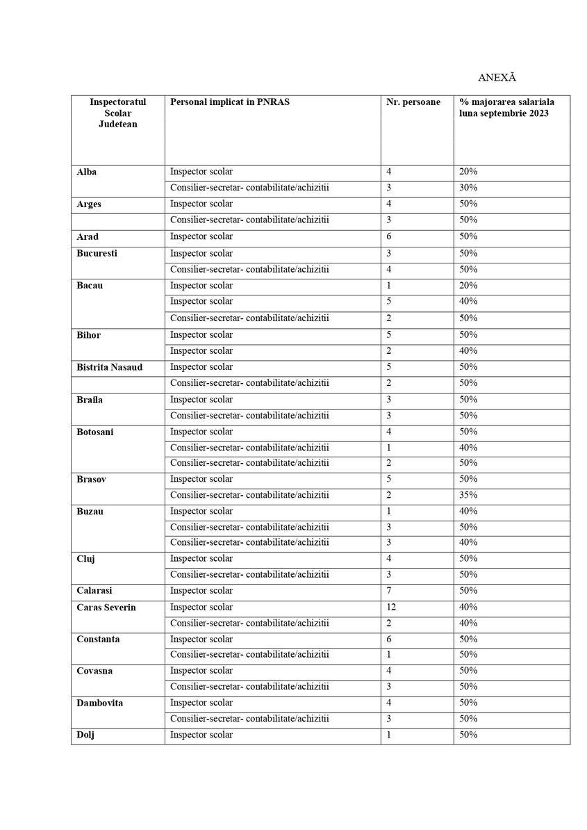 PressOne a solicitat în octombrie 2023 Ministerului Educației informații despre numărul de inspectori desemnați în fiecare județ pentru a superviza modul de desfășurare al PNRAS. Am primit ca răspuns documentul pe care îl atașăm mai jos.