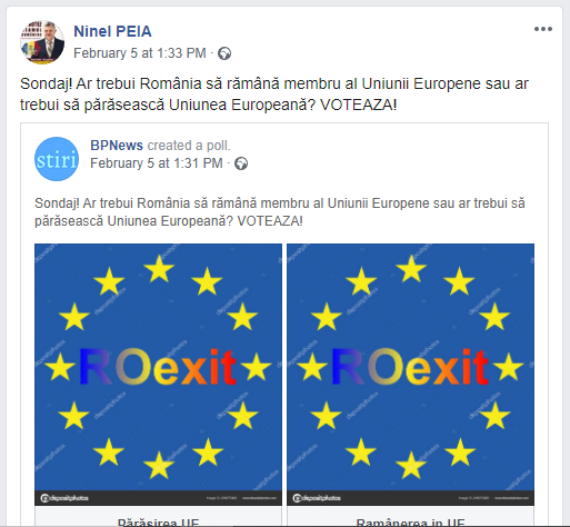 Pe de altă parte, pagina de Facebook asimilată site-ului a organizat un sondaj în care chestionează participanții dacă România ar trebui sau nu să părăsească Uniunea Europeană.