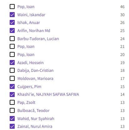 O centralizare pentru care am folosit baza de date a WoS arată că Ioan Pop a semnat în ultimul an 46 de articole. Următorii trei cei mai publicați cercetători sub egida UBB Cluj sunt Waini Iskandar, Ishak Anuar și Arifin Norihan, toți colaboratori și co-autori cu profesorul Pop.