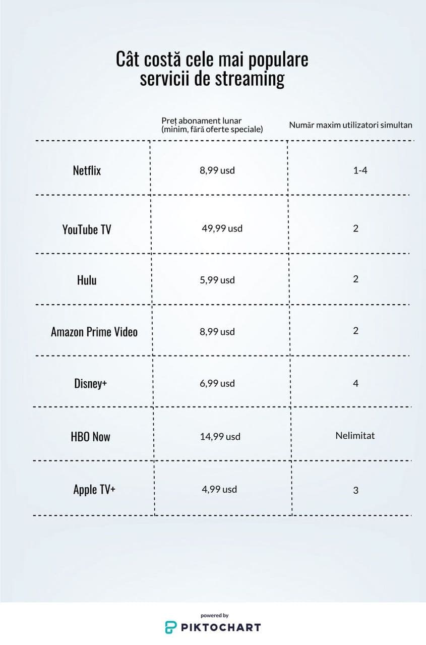 Apple și-a lansat la 1 noiembrie propriul serviciu de streaming, în încercarea de a concura cu nume deja consacrate în domeniu, precum Netflix, HBO sau Amazon. Disney a intrat în ring 12 zile mai târziu, cu Disney+. Consecința pe termen scurt este că pentru a avea acces la producții de calitate fiecare dintre noi va fi nevoit să plătească mai multe abonamente în paralel. În același timp, bugetele alocate producției și licențierii de conținut ajung la sume astronomice.