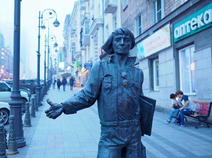 Cum spuneam mai sus, am stat cândva lângă statuia de bronz a acestui om, în port, la Vladivostok, pe un cer înnegurat, depresiv. În spate se afla un submarin-muzeu, în față un cuirasat-muzeu - două mașinării de ucis, motive de mândrie sovietică. Statuia lui Soljenițîn e frumoasă. Se află chiar pe mal. Arată un om demn, cu capul sus, cu mâna stângă ținând în dreptul inimii o carte și pășind cu un picior în aer înapoi pe pământul patriei sale, cea care l-a degradat, umilit, înfometat, deportat, alungat, denigrat.