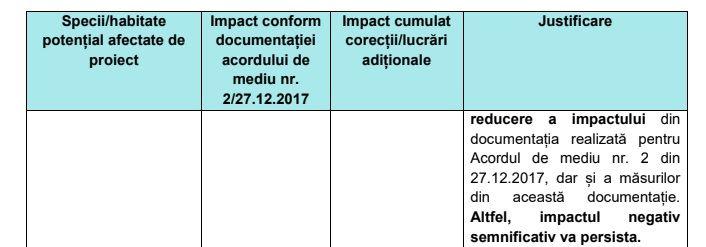 Cu toate acestea, din Memoriul de Prezentare pentru obținerea acordului de mediu, intitulat „Mărirea gradului de siguranță a acumulării Colibița, județul Bistrița-Năsăud”, se observă că impactul negativ se modifică de la nesemnificativ, în varianta din noiembrie, la negativ moderat, în varianta din decembrie 2018.