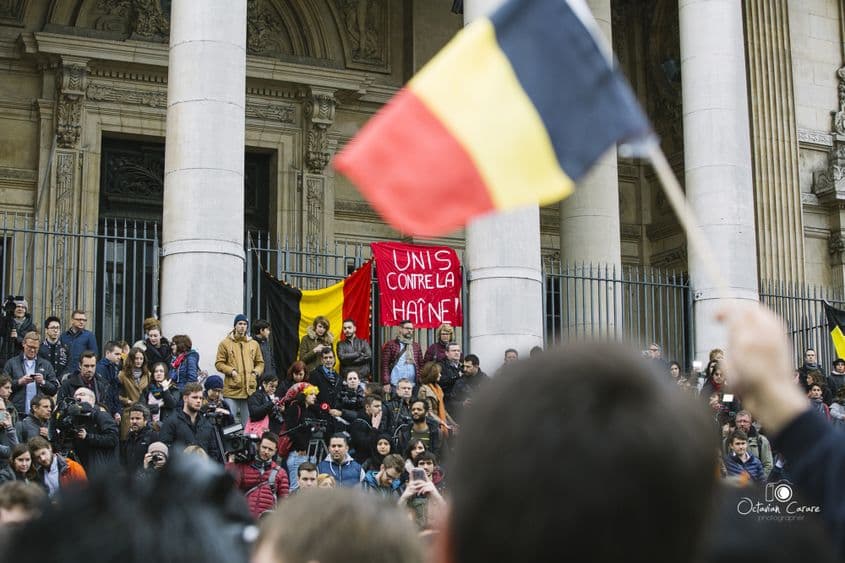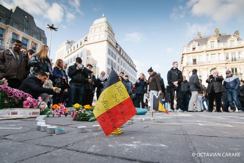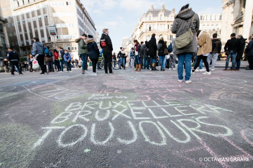 Comemorare în centrul Bruxellesului, a doua zi după atentate. Fotografii: Octavian Cărare (www.octaviancarare.com/blog)