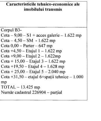 Suprafața propusă pentru a fi transferată este de 13.425 de metri pătrați și cuprinde încăperi aflate la 9 etaje din corpul B3 al Palatului Parlamentului.