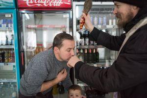 Preotul, însoțit de cele două ajutoare, trece și pe la pensiunile din Pasul Tihuța, pline de clienți la început de an. Unii îl privesc de parcă tocmai și-ar fi înghițit bețele de schi și-l refuză.