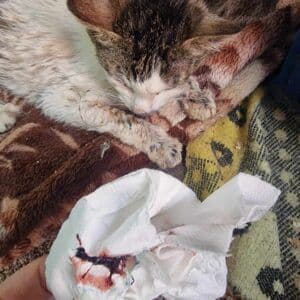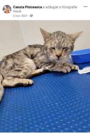 „O altă pisicuță, Bella, am crezut că e moartă. M-am speriat și am început să plâng”, spune Mihaela. Bella nu a murit atunci. A fost salvată de o altă iubitoare de pisici și dusă de urgență la veterinar.