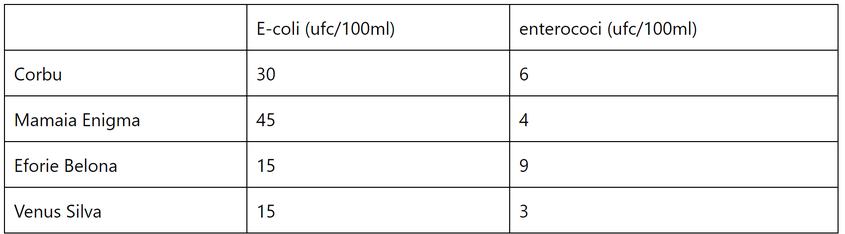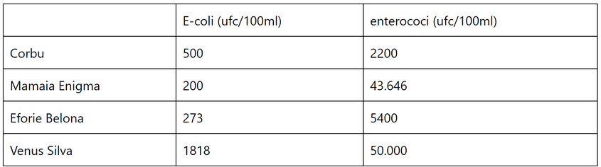Pentru E-coli, valorile obținute din analiza independentă au fost și de aproape 3 ori mai mari decât cele prevăzute de lege (în cazul plajei din Venus, zona Silva), iar valorile pentru enterococi au ieșit și de 270 de ori mai mari decât valorile maxime prevăzute în lege.