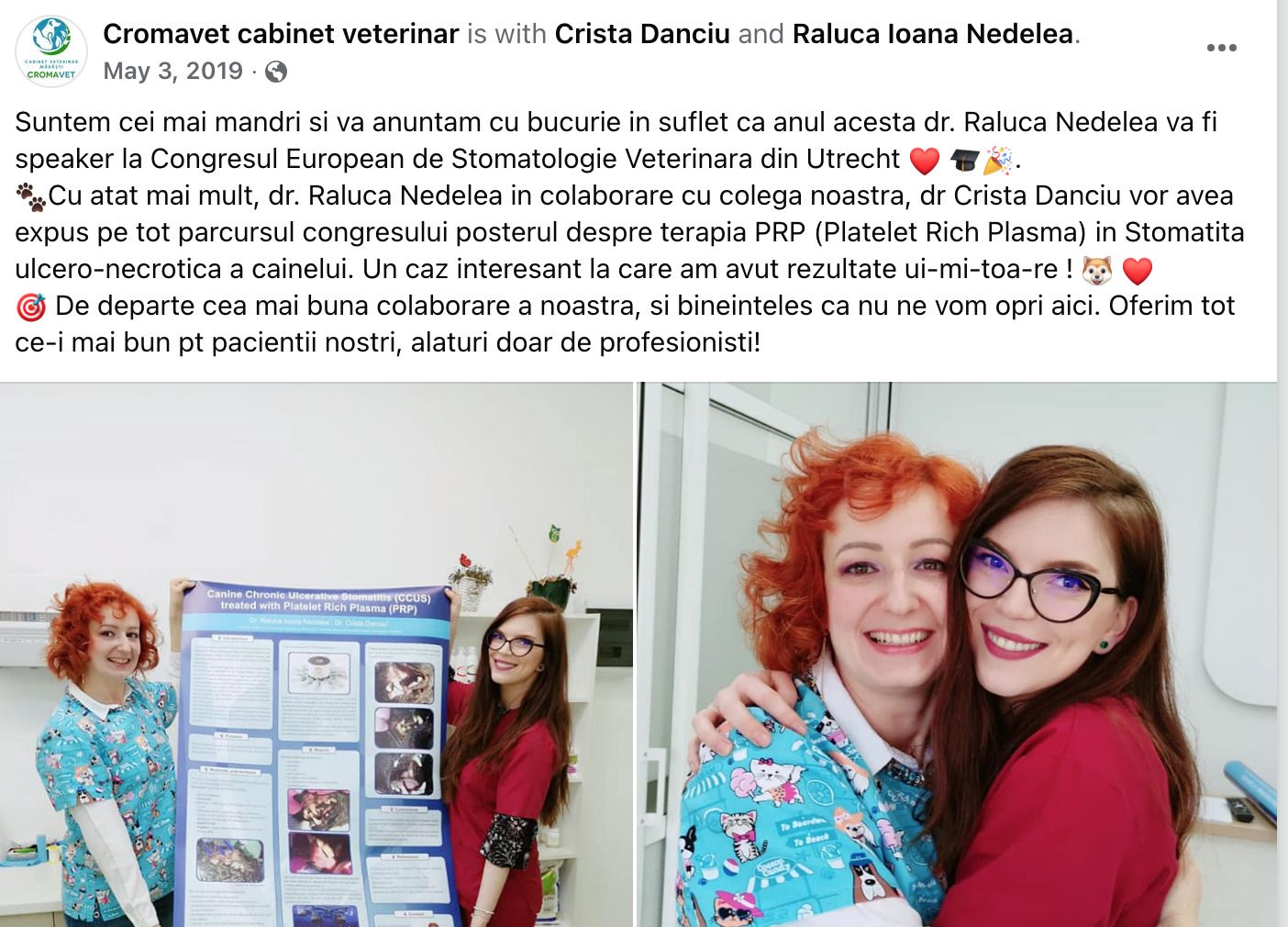 „Din păcate în România nu există cabinete stomatologice dedicate animalelor și nici dentiști veterinari. O doctoriță stomatolog din Cluj a dus iubirea pentru animale la un alt nivel, a studiat pe cont propriu și acum se ocupă cu succes și multă pricepere de problemele dentare ale animalelor de companie. Iar mâine oferă consultații gratuite câinilor și pisicilor în parcarea unui hipermarket din Cluj-Napoca”.