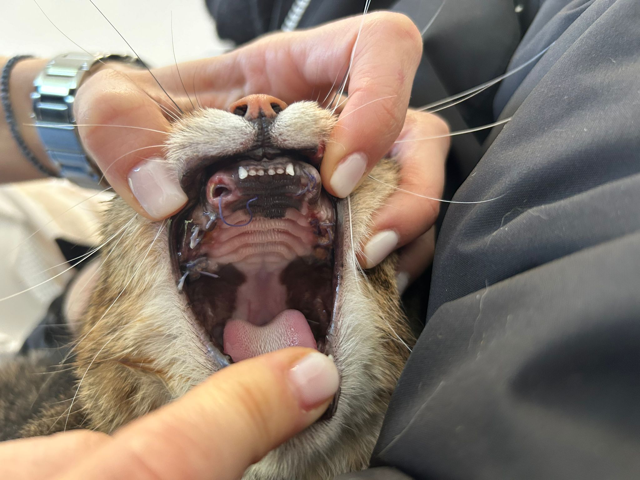 După intervenție, pisica n-a mai putut mânca, gura i s-a infectat și a mai trăit încă două luni, timp în care proprietarii spun că au cheltuit circa 14.000 lei cu analize, perfuzii și alte intervenții care să îi amelioreze starea.