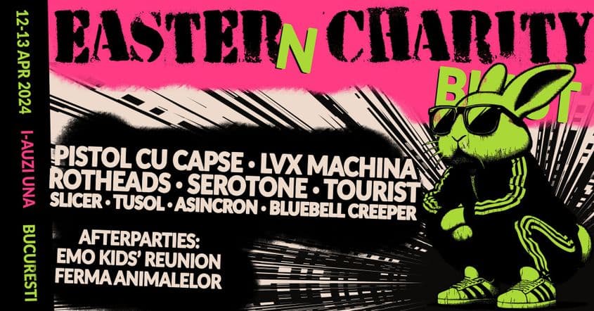 - Eastern Charity Blast vineri și sâmbătă, la I-auzi Una. Artiștii prezenți: Pistol cu Capse, Lvx Machina, Rotheads, Serotone, Tourist, Bluebell Creeper, Slicer, Tusol, Asincron. Tot profitul evenimentului va merge către asociația Kola Kariola (50 de lei).