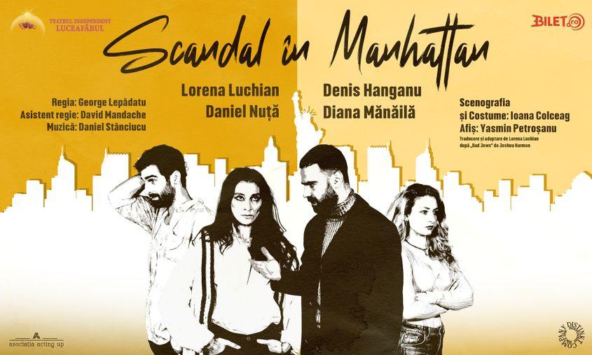 Vineri, de la 19:00, se joacă M&M la FF Theatre (60 de lei). Tot vineri, de la 19:30 poți merge la Divorț în ziua nunții la Teatrul Roșu (55 de lei). Sâmbătă, de la 19:00, se joacă Scandal în Manhattan la Sala Luceafărul (50 - 100 de lei). În același timp, la FF Theatre, se joacă Senzații noi (60 de lei).