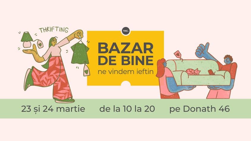 Bazar de bine are loc la TAC Social sâmbătă și duminică, de la 10:00 la 20:00. Organizatorii promit un loc unde „vindem ieftin lucruri donate de oameni buni”.