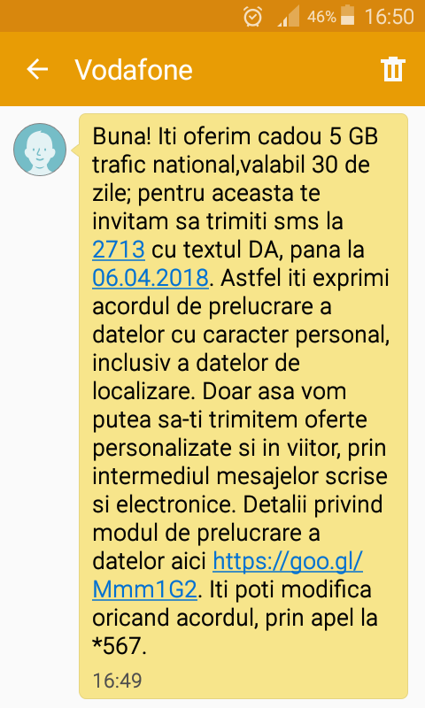 Ce înseamnă DA-ul pe care îl trimiteți companiei Vodafone pentru 5 GB de date
