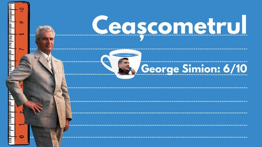 Toate aceste asemănări ne determină să-i acordăm lui George Simion calificativul 6 cești din 10 pe scara Ceașcometrului. Ia notă de trecere pentru imaginea de lider hotărât pe care a reușit s-o proiecteze în ultimele săptămâni, dar pierde puncte importante pentru că partidul lui nu controlează toată presa din România, încă n-a reușit să „zăgăzuiască” o viitură și nici nu s-au scris poezii despre el în presa centrală.