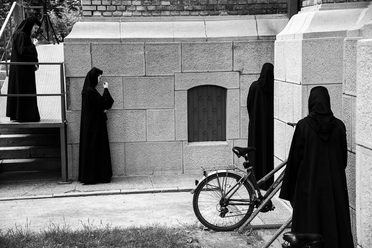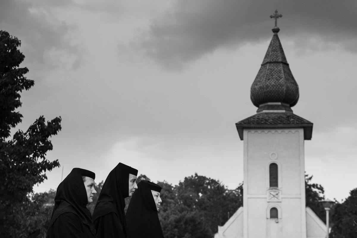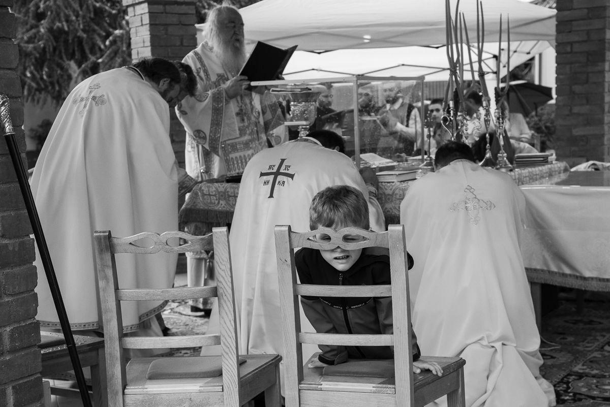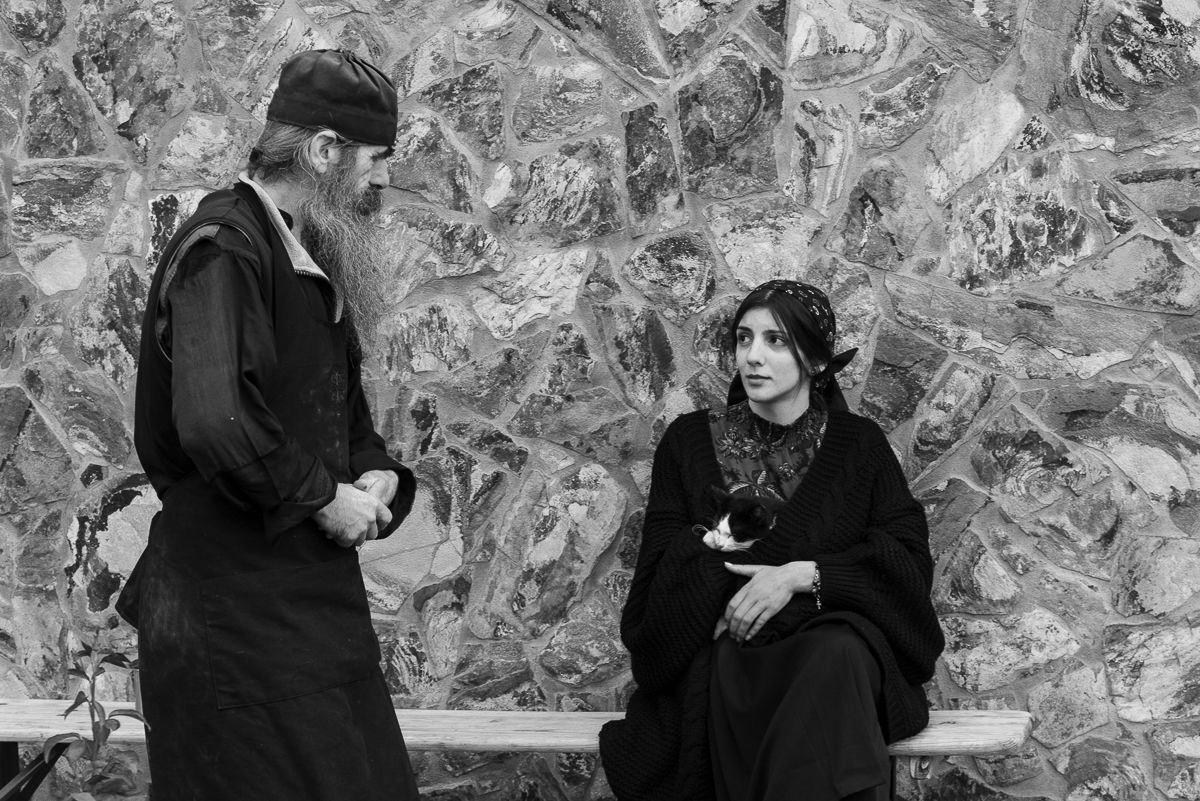 Doar că, odată ajuns acolo, omul nostru nu s-a astâmpărat. A început să ia seama de cele din jur, să observe preoții și oamenii, dar nu oricum, ci cu un ochi fotografic, care e altfel decât unul obișnuit. În cele din urmă, n-a mai rezistat. A luat aparatul în mână și a început să fotografieze. Nu la modul încărcat de patos și sobrietate cum ar face-o un credincios care ar vrea să transmită ceva din emoția și atmosfera de sacralitate a unui lăcaș de cult plin de penumbre, unde lumina e filtrată de vitralii și în jur miroase a tămâie. Nici măcar ca un portretist fascinat de ridurile sau de bărbile lungi ale unor bătrâni călugări iconari.