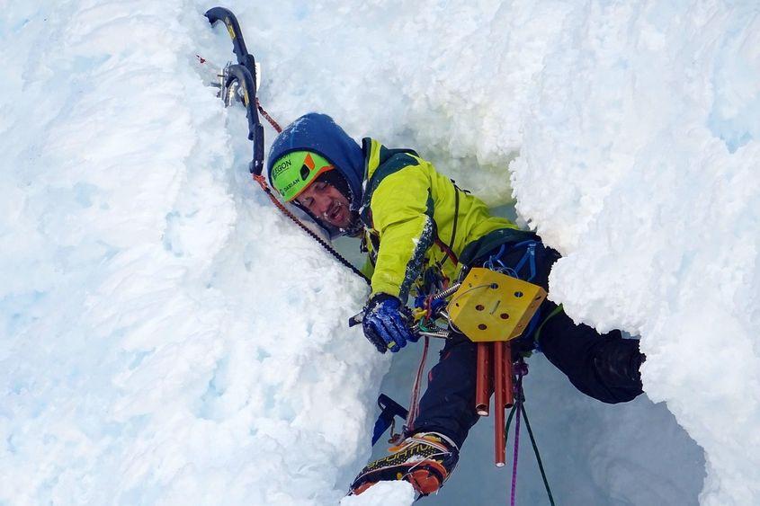 Imaginează-ți că ultima lungime de coardă, până să ne cățărăm în surplombă, pe calota de gheață, a durat cam 10 ore. Trebuia săpat în gheață un fel de grotă cam de un metru și jumătate până să ajungi la gheața albastră, cea stabilă, singura în care puteai fixa ceva.