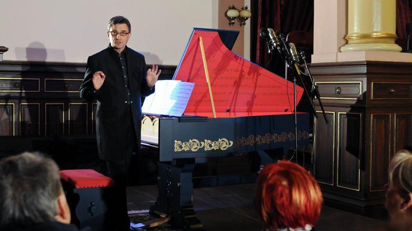 La finalul primei piese, polonezul se ridică și se prezintă. Ne spune că a ales piese din secolele al XVI-lea și al XVII-lea, compuse pentru viola da gamba, instrument apărut în Spania secolului al XV-lea și devenit popular în perioada Renașterii, când da Vinci și-a creat opera.