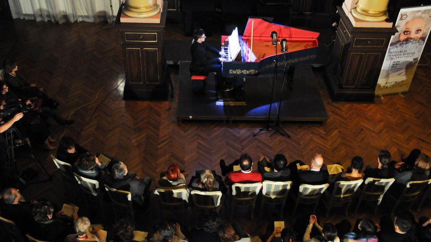 Suntem la Palatul Bragadiru din București, e seara de marți a Festivalului de Muzică Veche, și în fața noastră se găsește, uimitor, viola organista, minunăția care, timp de 500 de ani, a fost doar o idee a lui Leonardo ce părea condamnată la uitare.