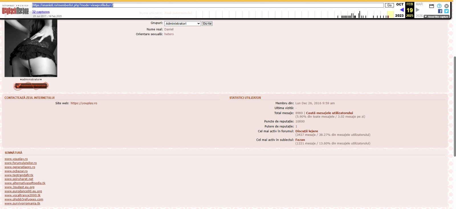 Un alt cont al aceluiași administrator al forumului onanisti. ro, sub care apar și restul de site-uri administrate de aceeași persoană