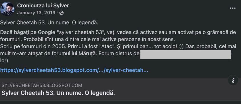 Sub numele de SylverCheetah și SylverCheeta53, bărbatul a ținut mai multe bloguri pe care a publicat regulat începând încă din 2005, după cum chiar el se laudă. Un exemplu este CronicuTZa lu Sylver, unde bărbatul a publicat și o biografie.