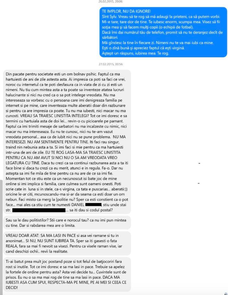 Pe același blog poate fi urmărită și obsesia bărbatului pentru o anumită femeie, pe care o hărțuia online încă din 2015, în ciuda insistențelor femeii de a nu avea niciun fel de interacțiune cu acesta.