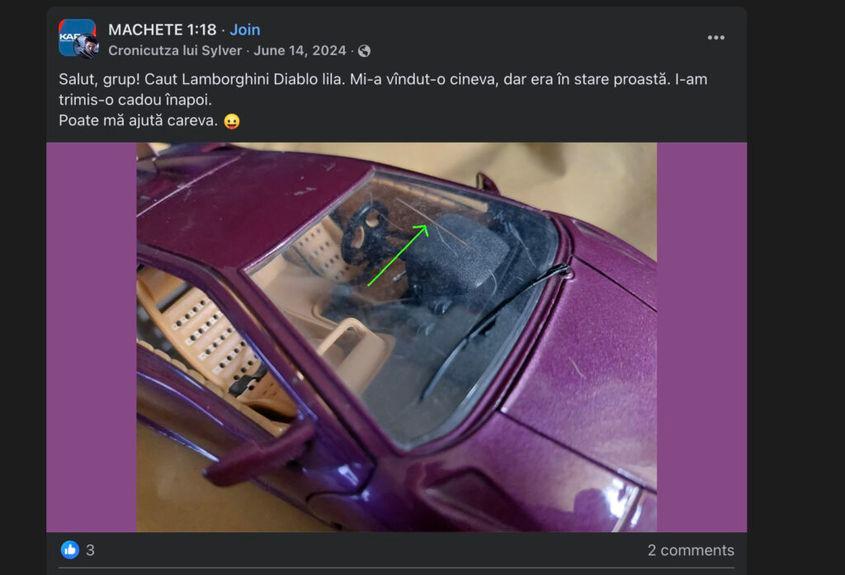 Tot de pe pagina de Facebook făcută pentru blogul CronicuTZa lu Sylver am descoperit și o serie de anunțuri cu privire la vânzarea de machete auto, publicate în grupuri de specialitate.