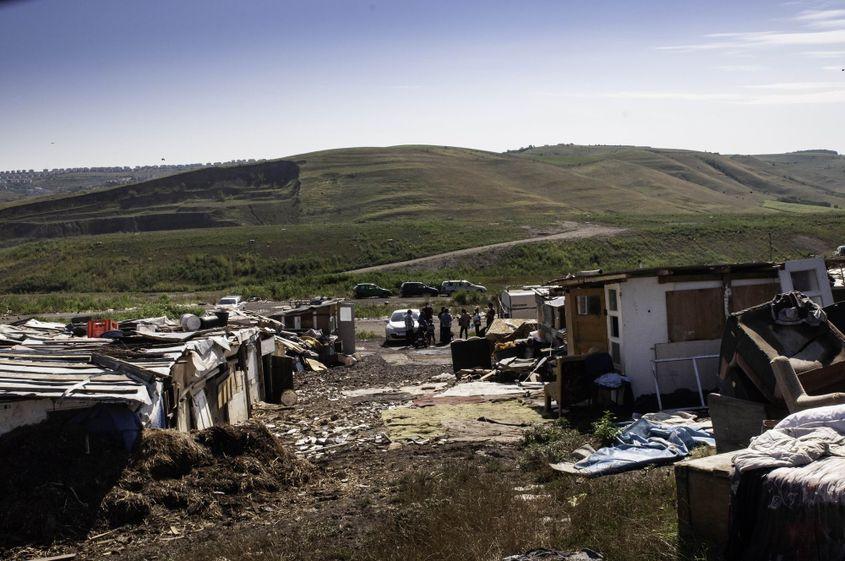 Mai aproape, Denisa vede în fiecare zi un pâlc de colibe din bucăți de placaj, uși dezghiocate, scaune cu câte un picior lipsă, cauciucuri de mașini, pături și lemne.