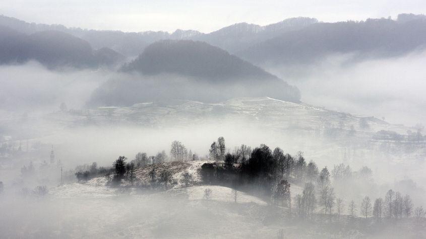 Un gri umed și mâlos care te însoțește peste tot, din Cluj în Maramureș și apoi în Bistrița-Năsăud. Fiindcă temperatura e nefiresc de mare pentru luna ianuarie, zăpada s-a topit și câmpurile îți fac cu ochiul de apă.