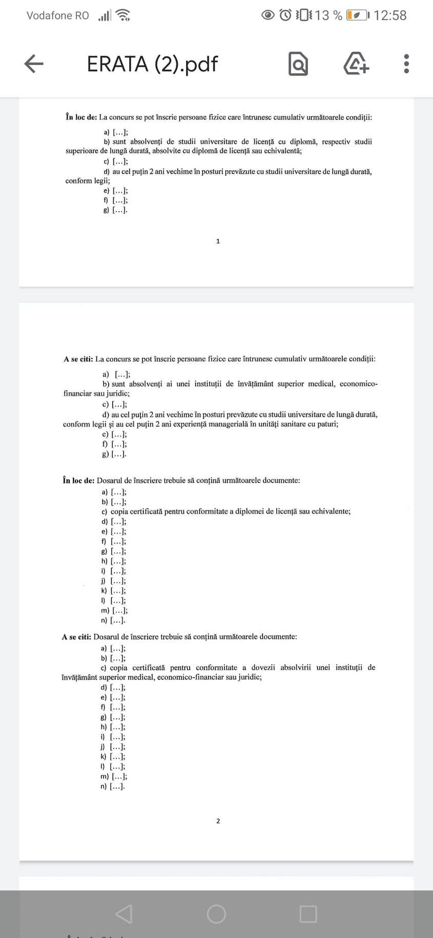 Tot ceea ce spun se probează public. Există anunțul din data de 12 martie, publicat pe site-ul CJ și pe site-ul spitalului, în care se vede clar că cerințele sunt conform vechii legislații, abrogate în decembrie 2016. În data de 18 martie se publică o erată în care înlocuiesc criteriul legat de studii cu ceea ce solicită legea în mod imperativ. Dar adaugă o condiție pe care noi o găsim discriminatorie, iar instanța pe fond se va pronunța la un moment dat.