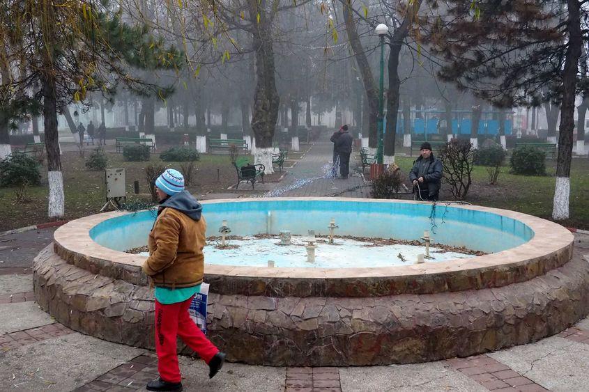 A doua zi, ceața e și mai deasă, iar în piață e zi de târg. Foială mare. Cu gesturi experte, câțiva domni pensionari cântăresc în mâini ciorapii de angora și cei groși, cu motive de Crăciun, fabricați în Maica Rossia. Bundițe din blană, pantaloni, căciuli, mături, saci de varză, alături de bocanci second și noi, întregesc peisajul.