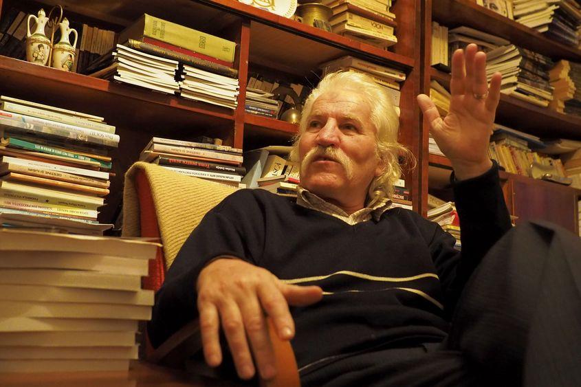 Nu trece mult și îmi strânge mâna un domn cu plete albe ca de domnitor, mustață căzută ca de haiduc, pas elastic de fost tenismen, ochi aprinși și zâmbet prietenos.