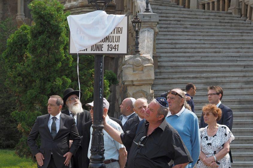 Mă învârt în jur şi caut indicii. Pe un stâlp e prinsă o placă mică, în şuruburi prea noi: „Piaţa evreilor martiri ai pogromului din iunie 1941”. Îmi cade fisa: azi, 29 iunie, se împlinesc 75 de ani de la tragedia din Iaşi.