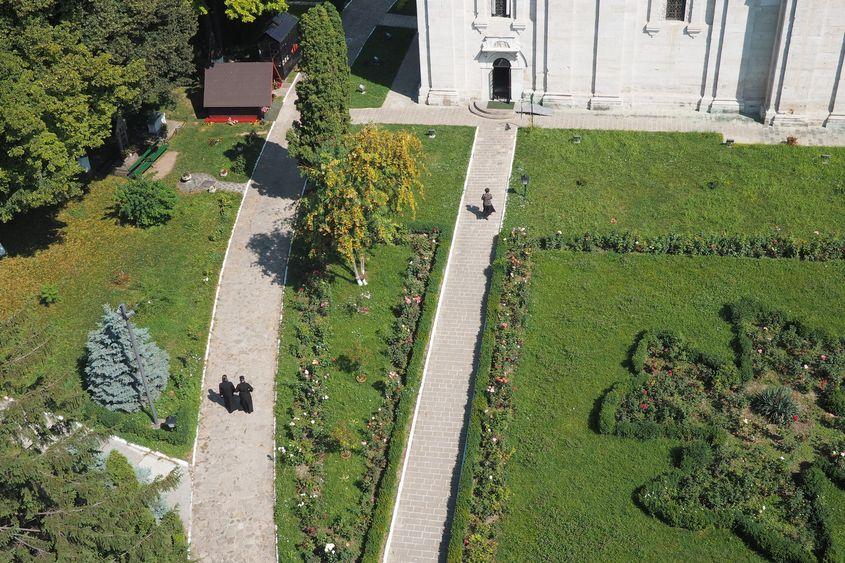Simt că aşa e Iaşul adevărat, cu lăcaşuri de închinare la tot pasul, deci trebuie să te adaptezi. Deşi temperatura de afară seamănă un pic cu Havana din timpul verii, intru pe poarta mănăstirii, nu înainte de a bifa un clişeu fotografic, acela de a încadra biserica toată în bolta intrării. Se zice că perspectiva din Turnul Golia merită atenţie.