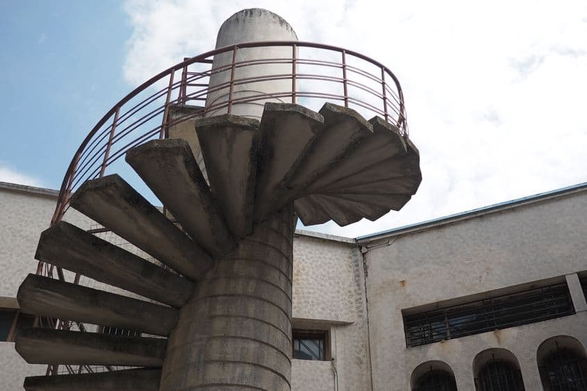 Unghiuri ascuţite, ferestre alandala, proporţii dubioase, scări în spirală năvălind spre cer, totul din beton scorojit, mirosind de la o poştă a fuşereală şi igrasie. Deşi relativ mică, această clădire aspiră spre monumental la fel cum câinele meu de-o şchioapă se crede ceva neam de lup.