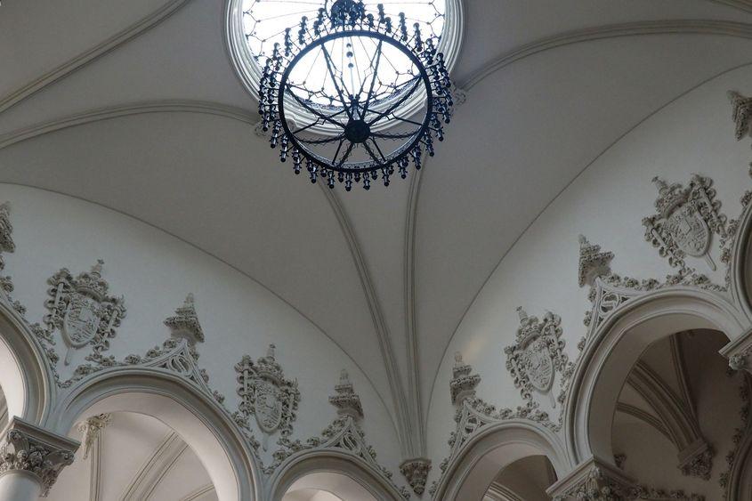 E târziu, tre’ să plece. Mă mulţumesc cu holul și cu privitul de afară în detaliu, vreme de vreun ceas. Stilul neogotic imaginat de arhitectul român I.D. Berindei e jovial şi prietenos, cu accente monumentale, care însă nu te copleşesc.