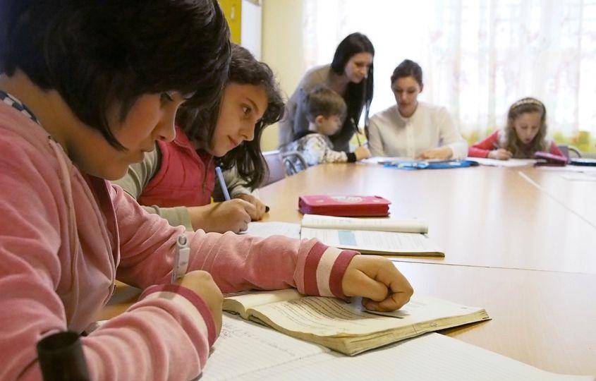 15.04. În clădirea proaspăt renovată, în spatele căreia se află un parc de joacă, e o atmosferă intensă de lucru. Aici, copiii își fac temele, se joacă și socializează.