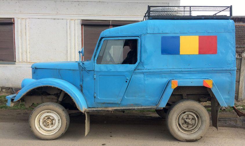 11.19 am. La un alt magazin, într-o intersecție, dau peste doi tipi simpatici, plimbându-se cu un IMS antic, dar vopsit foarte patriotic:
