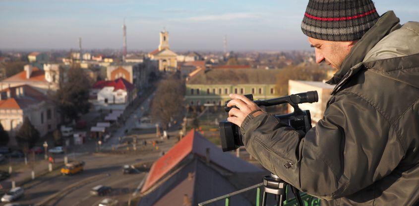 Alături de Peța, de dragul artei, am înghețat bocnă, într-o dimineață luminoasă, în turnul zvelt al vechii primării – pe vremuri post de observare a incendiilor, acum școală gimnazială -, unde am filmat și fotografiat coloniile de porumbei care dădeau ture deasupra Sânnicolaului.
