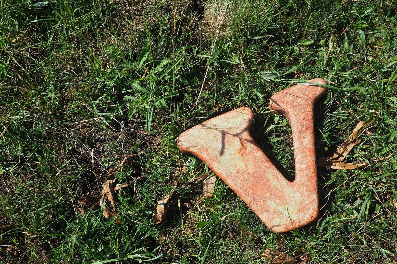 Și cea mai tare: de nicăieri, în iarbă, o literă mare V din fibră de sticlă, inițiala numelui meu, părând desprinsă de pe carlinga vreunui ozeneu în tranziție.