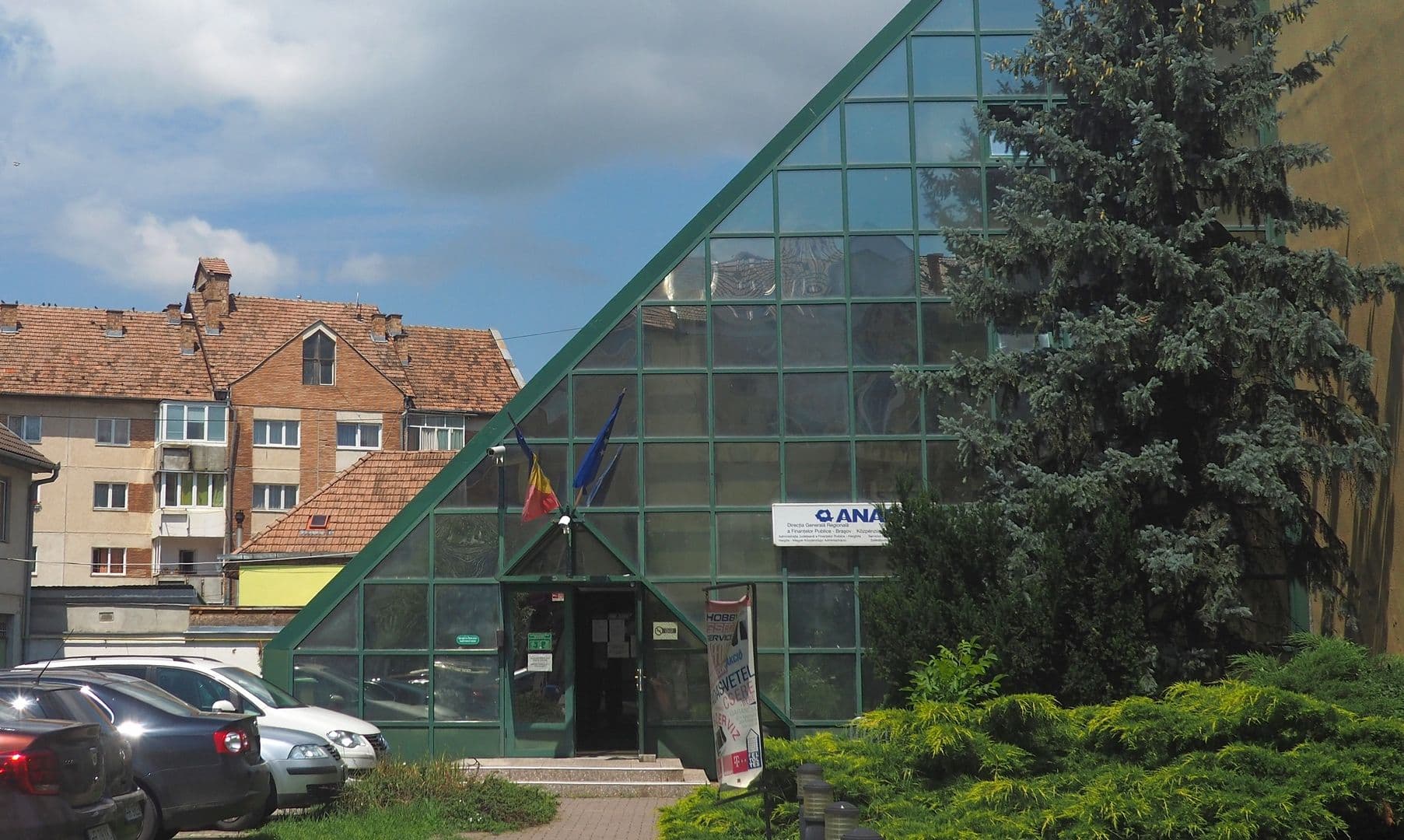 Pe lângă clădiri istorice proaspăt renovate dai peste hidoșenii cum e sediul ANAF. Un fel de șopron de sticlă verde, cu pretenții de zgârie-nori ratat, din care oameni cu dosare intră și ies ca albinele în urdiniș.