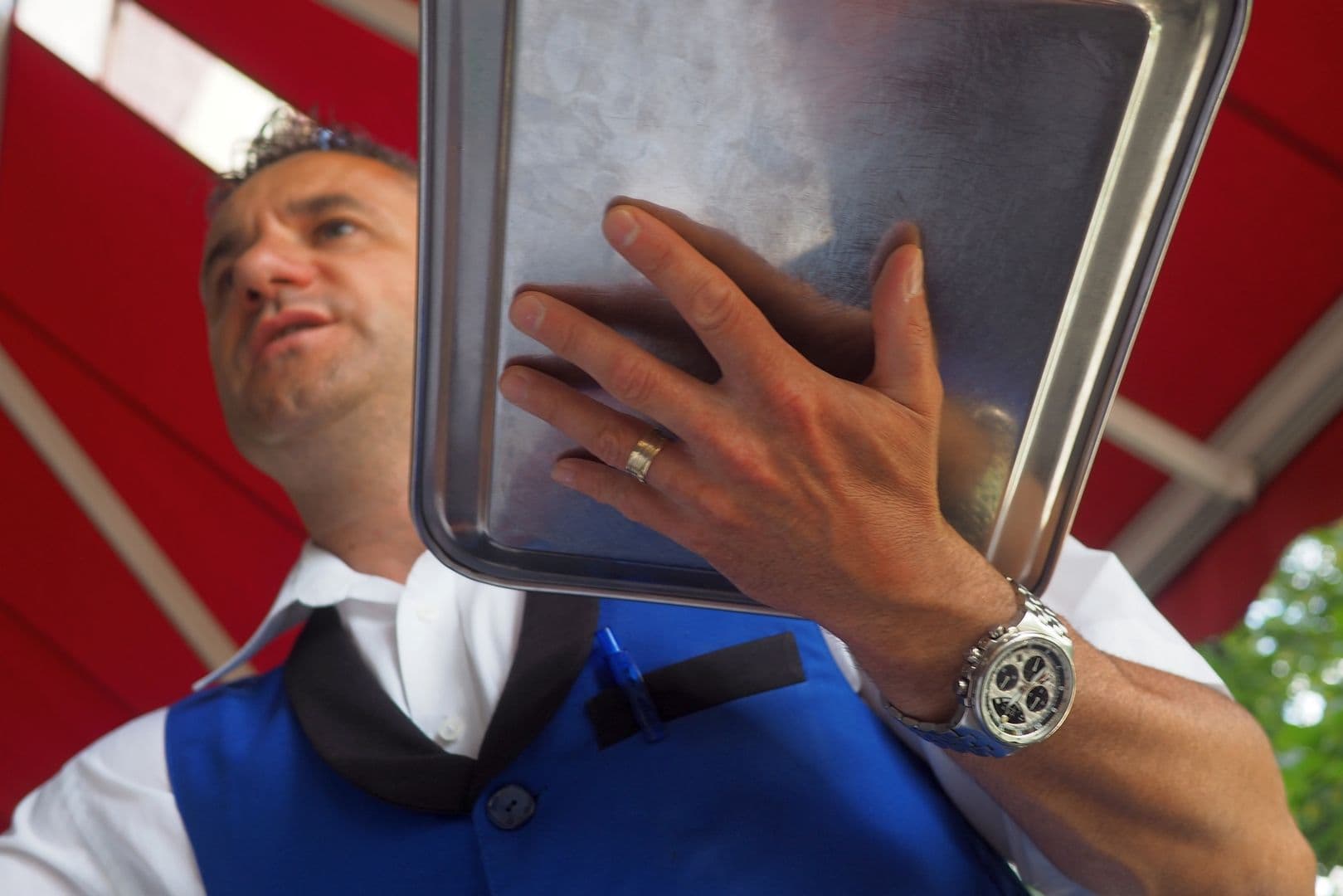 Terasa la care tragem are pretenții. Chelnerii sunt înțoliți, gelați, par să se miște cu stil, dar poartă ceasuri fake.