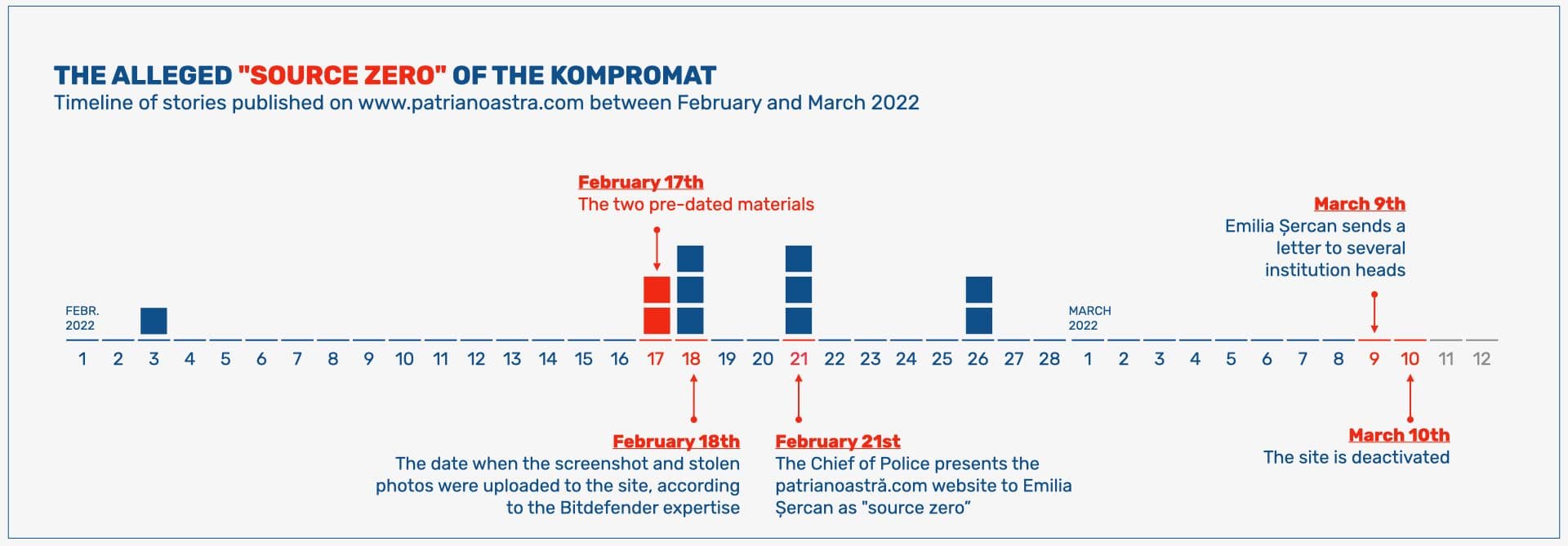 - The photos were uploaded to patrianoastra.com just two hours after I had informed Minister Lucian Bode that the evidence I submitted to the investigators the day before had been leaked by the Police and published on a website in Moldova, the “source zero" of the kompromat campaign;