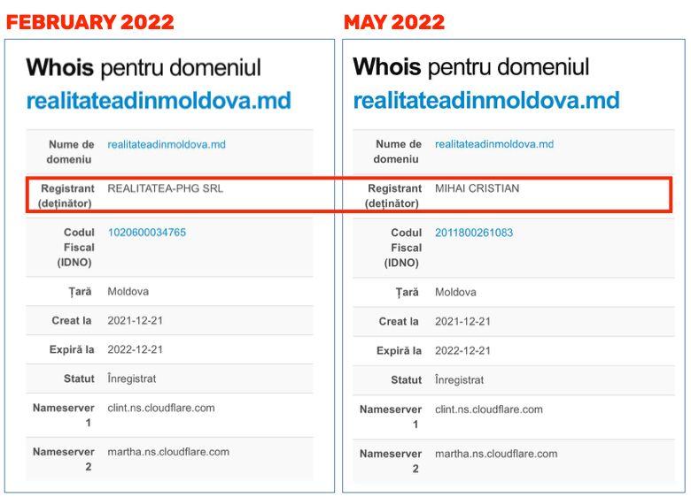 However, a February 18 check indicated that the realitateadinmoldova.md website was owned at the time by Realitatea-PHG SRL.