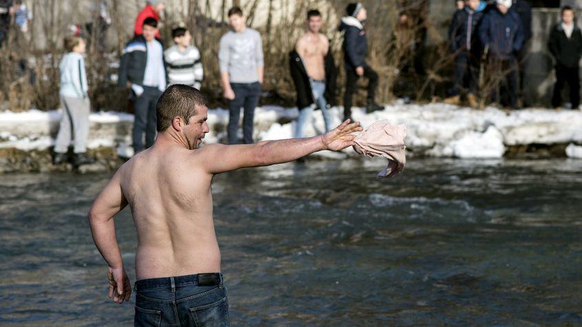 Apa Bistriței e doar rece, foarte rece la început de ianuarie. Un tânăr la bustul gol se clatină în mijlocul râului. E deja aghezmuit, spun martorii, s-a trezit devreme.