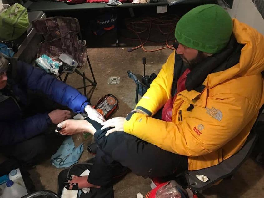 Știam de la Tibi că are picioarele praf și că sunt degerate, dar nu știam cât de tare. Organizatorii i-au spus că doctorul va decide dacă merge sau nu mai departe. Să zicem că vestea asta a fost suficientă să ne arunce pulsul în aer. Agonie.