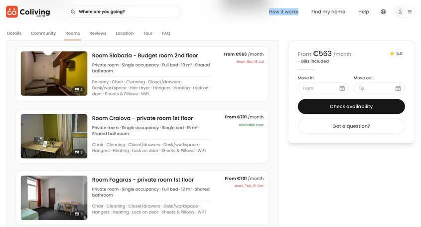 Practic, site-ul coliving.com are listate și alte închirieri de acest tip, camere în spații comune, în Craiova (de la 700 de euro pe lună), Slobozia (de la 563 de euro pe lună) sau Făgăraș (de la 700 de euro pe lună), dar și în alte orașe, precum Târgu Mureș, Bacău, Constanța, Timișoara, Brașov, Tulcea sau Sinaia, toate de la 800 de euro pe lună în sus.