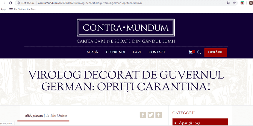 Interviul apare pentru prima dată, tradus, în România, pe site-ul editurii Contramundum, în 28 martie, cu titlul „Virolog decorat de Guvernul german: Opriți carantina!” - o afirmație pe care doctorul citat nu o face niciunde în interviul inițial, nici în preluarea din Sputnik.